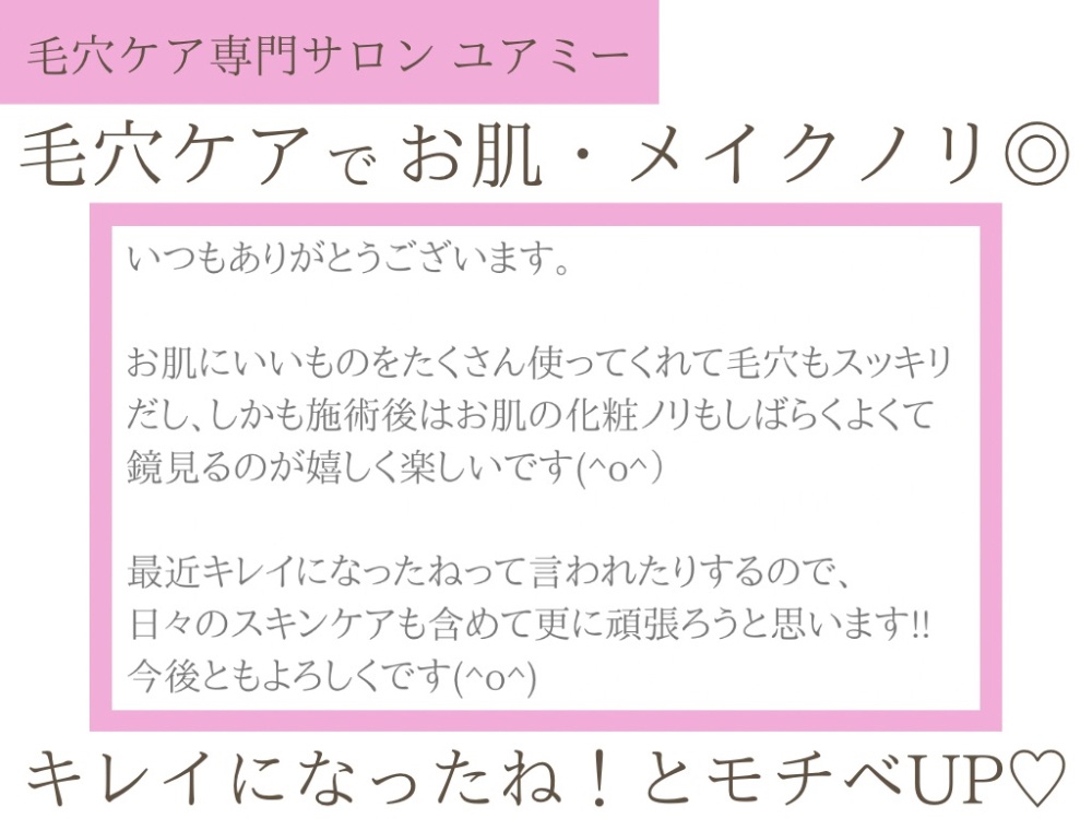 当サロンのホームページをご覧いただき、少しでも希望がみえたかも。と思った方、"いちご鼻からつるピカ肌の実感"をお試しいただけたら嬉しいです。